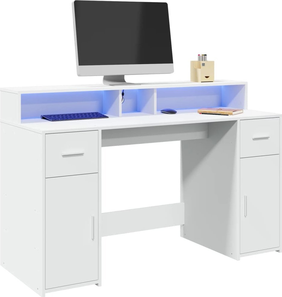 VidaXL Biurko z podświetleniem LED, biele, 140x55x91 cm