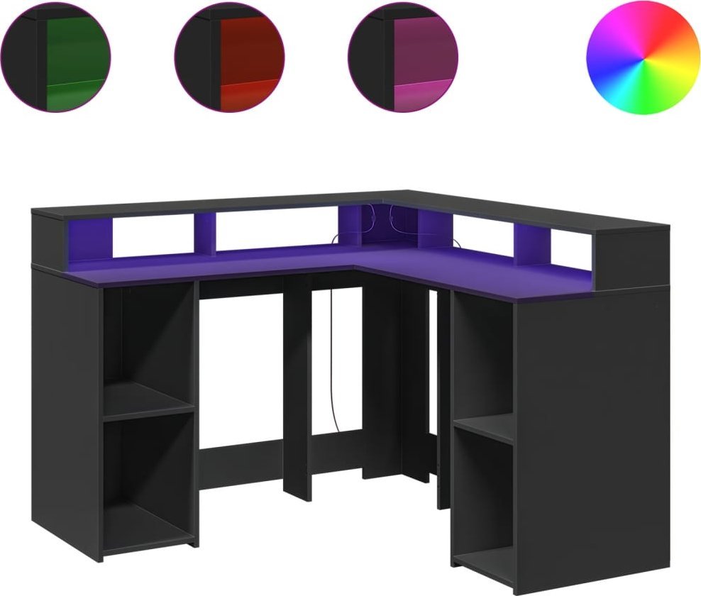 VidaXL Biurko z podświetleniem LED, čierne, 130x130x91 cm