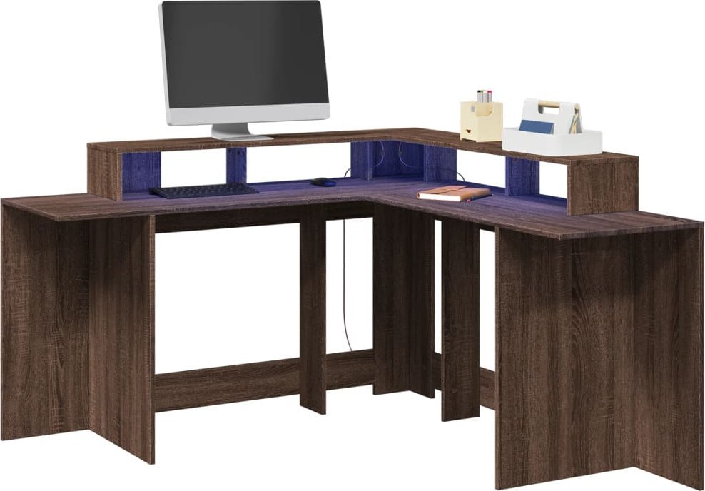 vidaXL Biurko z podświetleniem LED, Hnedý dub, 152x152x91 cm