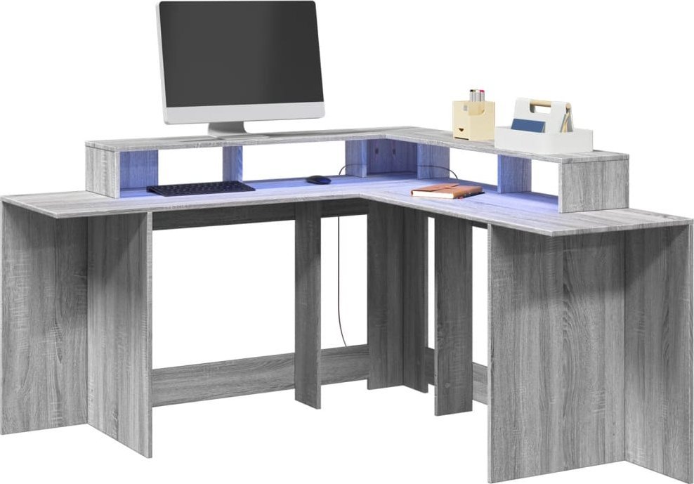 VidaXL Biurko z podświetleniem LED, Sivý dub sonoma, 152x152x91 cm
