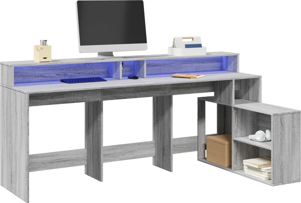 VidaXL Biurko z podświetleniem LED, Sivý dub sonoma, 200x104x91 cm