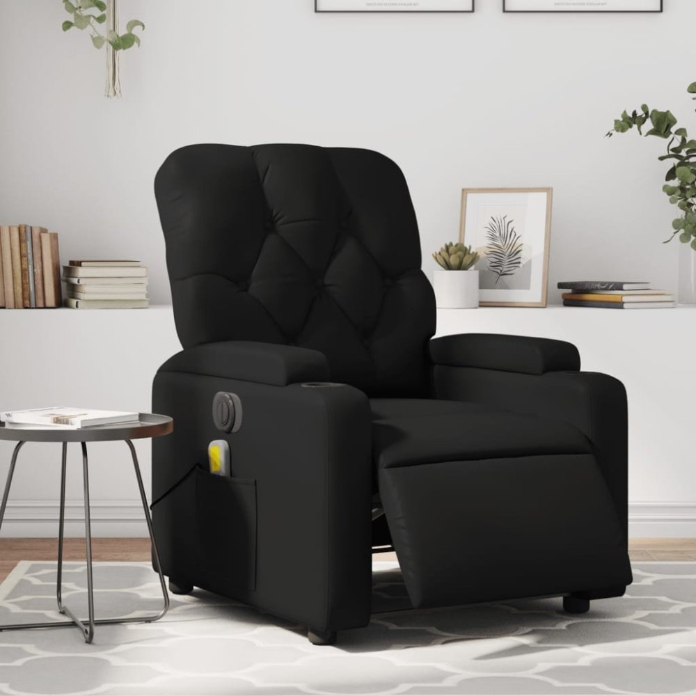 vidaXL Rozkładany fotel masujący, elektryczny, Čierny, sztuczna skóra