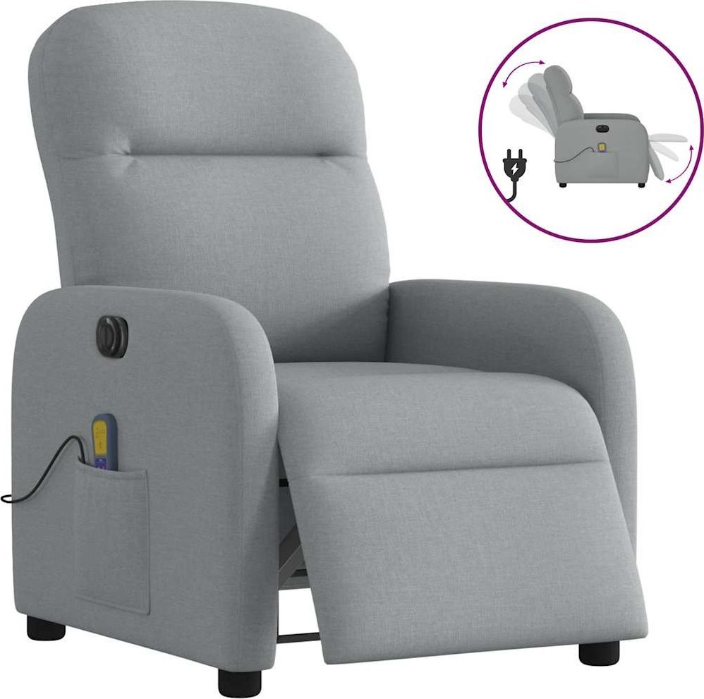 VidaXL vidaXL Rozkładany fotel masujący, elektryczny, jasnoSivý, tkanina