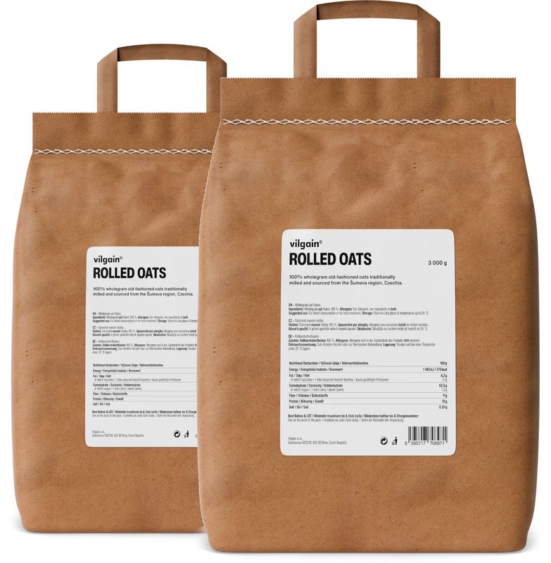 Vilgain Ovsené vločky sú vždy čerstvo namleté z ovsa zo šumavských polí. Majú výraznú orieškovú chuť a pevnú vláknitú štruktúru, ktorá výborne drží tvar.