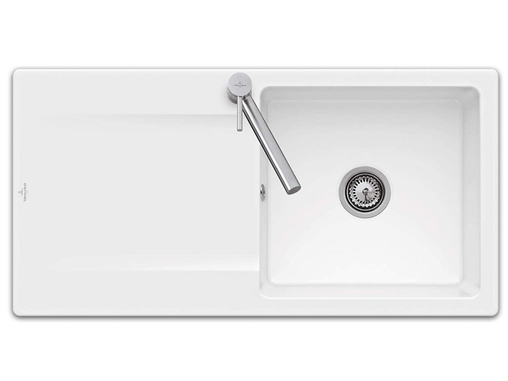 Keramický drez pre hornú montáž, bez excentra, farba Stone White, šírka 100 cm Keramický drez Villeroy & Boch Siluet je vyrobený z materiálu TitanCeram, ktorý zaisťuje výnimočnú tvrdosť, odolnosť proti poškriabaniu alebo inému poškodeniu a tiež odolnosť proti vysokým teplotám. Povrch je odolný proti cudzím látkam a nečistotám, takže sa výborne čistí a potraviny na ňom nezanechávajú žiadne stopy. Materiál CeramicPlus je vyrobený zo 100% prírodných materiálov, je farebne stály a neprijíma chute ani zápachy, takže ja absolútne nezávadný pre potraviny. Materiál: keramika s úpravou TitanCeram Farba: Stone White, matná Drez je určený pre hornú montáž na pracovnú dosku Drez je obojstranný - vanička môže byť napravo alebo naľavo Obsahuje odpadovú sadu bez excentra (ručné ovládanie výpuste) a sitko na nečistoty Sifón nie je súčasťou dodávky (možno doobjednať pod označením 94060000) Rozmery drezu (ŠxHxV): 1000 x 510 x 220 mm Rozmery výrezu (ŠxH): 970 x 480 mm Minimálna šírka skrinky: 600 mm Hmotnosť: 26,4 kg Pri objednávke uvádzajte číslo otvoru pre batériu - viď nákres Tento typ drezu sa vyrába vo farbách White alpin, Stone White, Cream, Ivory, Almond, Steam, Fossil, Stone, Graphite, Pure Black, Snow White, Timber, Chromite. Tento drez s odpadovou sadou s excentrom je na dopyt.(GT) Ean: 4051202946296