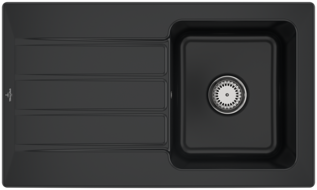 Keramický drez pre hornú montáž, bez excentra, farba Pure Black, šírka 86 cm (nástupca za 335001S5 Ebony) Keramický drez Villeroy & Boch Architectura je vyrobený z materiálu CeramicPlus, ktorý zaisťuje výnimočnú tvrdosť, odolnosť proti poškriabaniu alebo inému poškodeniu a tiež odolnosť proti vysokým teplotám. Povrch je odolný voči cudzím látkam a nečistotám, takže sa výborne čistí a potraviny na ňom nezanechávajú žiadne stopy. Materiál CeramicPlus je vyrobený zo 100% prírodných materiálov, je farebne stály a neprijíma chute ani zápachy, takže ja absolútne nezávadný pre potraviny. Materiál: keramika s úpravou CeramicPlus Farba: Pure Black, čierna matná Drez je určený pre hornú montáž na pracovnú dosku Drez je obojstranný - vanička môže byť napravo alebo naľavo Obsahuje odpadovú sadu bez excentra (ručné ovládanie výpuste) a sitko na nečistoty Sifón nie je súčasťou dodávky (možno doobjednať pod označením 94060000) Rozmery drezu (ŠxHxV): 860 x 510 x 220 mm Rozmery výrezu (ŠxH): 830 x 480 mm Minimálna šírka skrinky: 500 mm Hmotnosť: 23,28 kg Pri objednávke uvádzajte číslo otvoru pre batériu - viď nákres Tento typ drezu sa vyrába vo farbách White alpin, Stone White, Cream, Ivory, Almond, Steam, Fossil, Stone, Graphite, Pure Black, Snow White, Timber, Chromite. Tento drez s odpadovou sadou s excentrom je na dopyt.(GT) Ean: 4051202537524