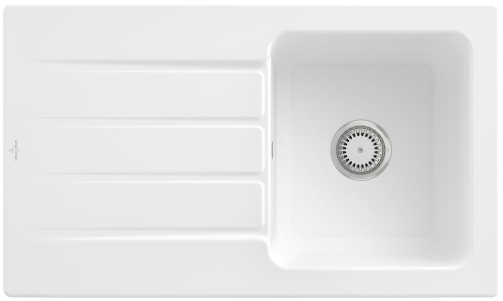 Keramický drez pre hornú montáž, bez excentra, farba Stone White, šírka 86 cm Keramický drez Villeroy & Boch Architectura je vyrobený z materiálu CeramicPlus, ktorý zaisťuje výnimočnú tvrdosť, odolnosť proti poškriabaniu alebo inému poškodeniu a tiež odolnosť proti vysokým teplotám. chute ani zápachy, takže ja absolútne nezávadný pre potraviny. Materiál: keramika s úpravou CeramicPlus Farba: Stone White, matná biela Drez je určený pre hornú montáž na pracovnú dosku Drez je obojstranný - vanička môže byť napravo alebo naľavo Obsahuje odpadovú sadu bez excentra (ručné ovládanie výpuste) a sitko na nečistoty Sifón nie je súčasťou dodávky (možno doobjednať pod označením 94060000) Rozmery drezu (ŠxHxV): 860 x 510 x 220 mm Rozmery výrezu (ŠxH): 830 x 480 mm Minimálna šírka skrinky: 500 mm Hmotnosť: 23,28 kg Pri objednávke uvádzajte číslo otvoru pre batériu - viď nákres Tento typ drezu sa vyrába vo farbách White alpin, Stone White, Cream, Ivory, Almond, Steam, Fossil, Stone, Graphite, Pure Black, Snow White, Timber, Chromite. Tento drez s odpadovou sadou s excentrom je na dopyt.(GT) Ean: 4051202946357
