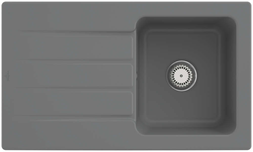 Keramický drez pre hornú montáž, bez excentru, farba Stone, šírka 86 cm Keramický drez Villeroy & Boch Architectura je vyrobený z materiálu CeramicPlus, ktorý zaisťuje výnimočnú tvrdosť, odolnosť proti poškriabaniu alebo inému poškodeniu a tiež odolnosť proti vysokým teplotám. Povrch je odolný voči cudzím látkam a nečistotám, takže sa výborne čistí a potraviny na ňom nezanechávajú žiadne stopy. Materiál CeramicPlus je vyrobený zo 100% prírodných materiálov, je farebne stály a neprijíma chute ani zápachy, takže ja absolútne nezávadný pre potraviny. Materiál: keramika s úpravou CeramicPlus Farba: Stone, matná Drez je určený pre hornú montáž na pracovnú dosku Drez je obojstranný - vanička môže byť napravo alebo naľavo Obsahuje odpadovú sadu bez excentra (ručné ovládanie výpuste) a sitko na nečistoty Sifón nie je súčasťou dodávky (možno doobjednať pod označením 94060000) Rozmery drezu (ŠxHxV): 860 x 510 x 220 mm Rozmery výrezu (ŠxH): 830 x 480 mm Minimálna šírka skrinky: 500 mm Hmotnosť: 23,28 kg Pri objednávke uvádzajte číslo otvoru pre batériu - viď nákres Tento typ drezu sa vyrába vo farbách White alpin, Stone White, Cream, Ivory, Almond, Steam, Fossil, Stone, Graphite, Pure Black, Snow White, Timber, Chromite. Tento drez s odpadovou sadou s excentrom je na dopyt.(GT) Ean: 4051202587413