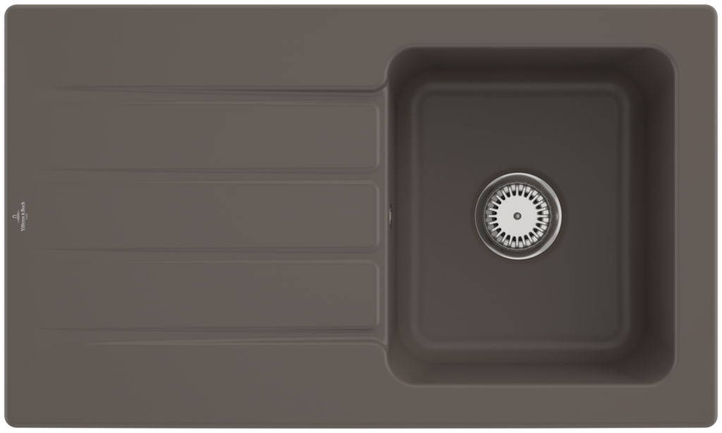 Keramický drez pre hornú montáž, bez excentra, farba Timber, šírka 86 cm . Keramický drez Villeroy & Boch Architectura je vyrobený z materiálu CeramicPlus, ktorý zaisťuje výnimočnú tvrdosť, odolnosť proti poškriabaniu alebo inému poškodeniu a tiež odolnosť proti vysokým teplotám. Povrch je odolný voči cudzím látkam a nečistotám, takže sa výborne čistí a potraviny na ňom nezanechávajú žiadne stopy. Materiál CeramicPlus je vyrobený zo 100% prírodných materiálov, je farebne stály a neprijíma chute ani zápachy, takže ja absolútne nezávadný pre potraviny. Materiál: keramika s úpravou CeramicPlus Farba: Timber, matná Drez je určený pre hornú montáž na pracovnú dosku Drez je obojstranný - vanička môže byť napravo alebo naľavo Obsahuje odpadovú sadu bez excentra (ručné ovládanie výpuste) a sitko na nečistoty Sifón nie je súčasťou dodávky (možno doobjednať pod označením 94060000) Rozmery drezu (ŠxHxV): 860 x 510 x 220 mm Rozmery výrezu (ŠxH): 830 x 480 mm Minimálna šírka skrinky: 500 mm Hmotnosť: 23,28 kg Pri objednávke uvádzajte číslo otvoru pre batériu - viď nákres Tento typ drezu sa vyrába vo farbách White alpin, Stone White, Cream, Ivory, Almond, Steam, Fossil, Stone, Graphite, Pure Black, Snow White, Timber, Chromite. Tento drez s odpadovou sadou s excentrom je na dopyt.(GT) Ean: 4051202537531