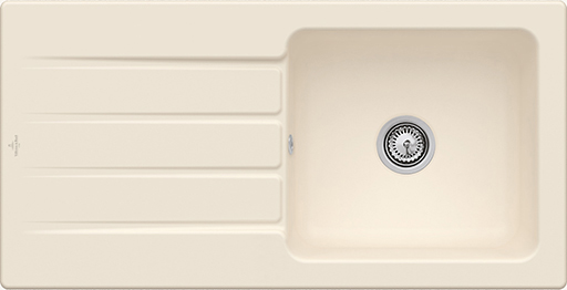 Keramický drez pre hornú montáž, bez excentru, farba Ivory, šírka 100 cm Keramický drez Villeroy & Boch Architectura je vyrobený z materiálu CeramicPlus, ktorý zaisťuje výnimočnú tvrdosť, odolnosť proti poškriabaniu alebo inému poškodeniu a tiež odolnosť proti vysokým teplotám. Povrch je odolný voči cudzím látkam a nečistotám, takže sa výborne čistí a potraviny na ňom nezanechávajú žiadne stopy. Materiál CeramicPlus je vyrobený zo 100% prírodných materiálov, je farebne stály a neprijíma chute ani zápachy, takže ja absolútne nezávadný pre potraviny. Materiál: keramika s úpravou CeramicPlus Farba: Ivory, matná Drez je určený pre hornú montáž na pracovnú dosku Drez je obojstranný - vanička môže byť napravo alebo naľavo Obsahuje odpadovú sadu bez excentra (ručné ovládanie výpuste) a sitko na nečistoty Sifón nie je súčasťou dodávky (možno doobjednať pod označením 94060000) Rozmery drezu (ŠxHxV): 1000 x 510 x 220 mm Rozmery výrezu (ŠxH): 970 x 480 mm Minimálna šírka skrinky: 600 mm Hmotnosť: 26,35 kg Pri objednávke uvádzajte číslo otvoru pre batériu - viď nákres Tento typ drezu sa vyrába vo farbách White alpin, Stone White, Cream, Ivory, Almond, Steam, Fossil, Stone, Graphite, Pure Black, Snow White, Timber, Chromite. Tento drez s odpadovou sadou s excentrom je na dopyt.(GT) Ean: 4051202537661