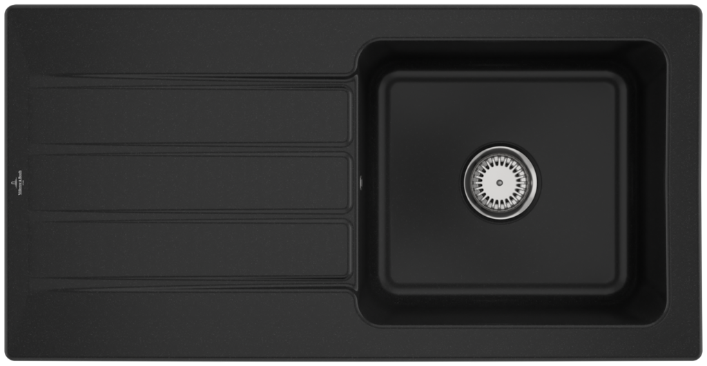 Keramický drez pre hornú montáž, bez excentra, farba Chromit, šírka 100 cm. Keramický drez Villeroy & Boch Architectura je vyrobený z materiálu CeramicPlus, ktorý zaisťuje výnimočnú tvrdosť, odolnosť proti poškriabaniu alebo inému poškodeniu a tiež odolnosť proti vysokým teplotám. Povrch je odolný voči cudzím látkam a nečistotám, takže sa výborne čistí a potraviny na ňom nezanechávajú žiadne stopy. Materiál CeramicPlus je vyrobený zo 100% prírodných materiálov, je farebne stály a neprijíma chute ani zápachy, takže ja absolútne nezávadný pre potraviny. Materiál: keramika s úpravou CeramicPlus Farba: Chromiť, lesklá Drez je určený pre hornú montáž na pracovnú dosku Drez je obojstranný - vanička môže byť napravo alebo naľavo Obsahuje odpadovú sadu bez excentra (ručné ovládanie výpuste) a sitko na nečistoty Sifón nie je súčasťou dodávky (možno doobjednať pod označením 94060000) Rozmery drezu (ŠxHxV): 1000 x 510 x 220 mm Rozmery výrezu (ŠxH): 970 x 480 mm Minimálna šírka skrinky: 600 mm Hmotnosť: 26,35 kg Pri objednávke uvádzajte číslo otvoru pre batériu - viď nákres Tento typ drezu sa vyrába vo farbách White alpin, Stone White, Cream, Ivory, Almond, Steam, Fossil, Stone, Graphite, Pure Black, Snow White, Timber, Chromite. Tento drez s odpadovou sadou s excentrom je na dopyt.(GT) Ean: 4051202537685
