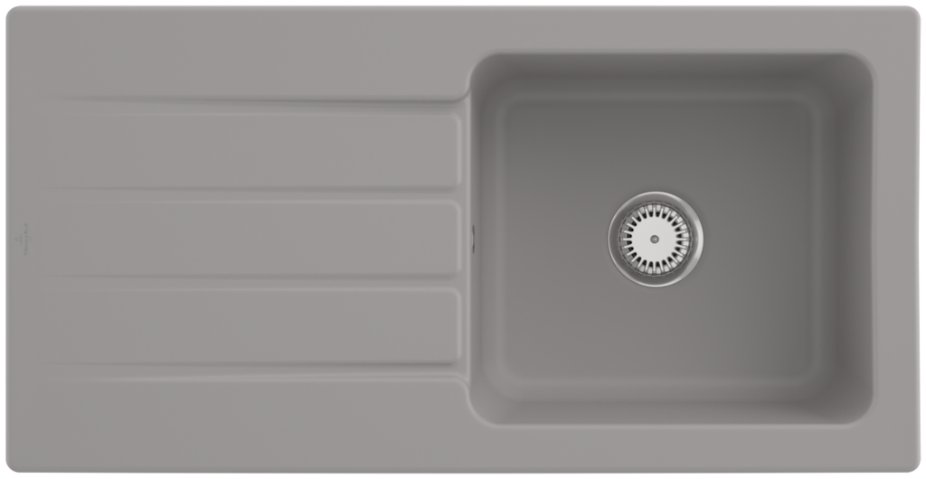 Keramický drez pre hornú montáž, bez excentru, farba Fossil, šírka 100 cm Keramický drez Villeroy & Boch Architectura je vyrobený z materiálu CeramicPlus, ktorý zaisťuje výnimočnú tvrdosť, odolnosť proti poškriabaniu alebo inému poškodeniu a tiež odolnosť proti vysokým teplotám. Povrch je odolný voči cudzím látkam a nečistotám, takže sa výborne čistí a potraviny na ňom nezanechávajú žiadne stopy. Materiál CeramicPlus je vyrobený zo 100% prírodných materiálov, je farebne stály a neprijíma chute ani zápachy, takže ja absolútne nezávadný pre potraviny. Materiál: keramika s úpravou CeramicPlus Farba: Fossil, matná Drez je určený pre hornú montáž na pracovnú dosku Drez je obojstranný - vanička môže byť napravo alebo naľavo Obsahuje odpadovú sadu bez excentra (ručné ovládanie výpuste) a sitko na nečistoty Sifón nie je súčasťou dodávky (možno doobjednať pod označením 94060000) Rozmery drezu (ŠxHxV): 1000 x 510 x 220 mm Rozmery výrezu (ŠxH): 970 x 480 mm Minimálna šírka skrinky: 600 mm Hmotnosť: 26,35 kg Pri objednávke uvádzajte číslo otvoru pre batériu - viď nákres Tento typ drezu sa vyrába vo farbách White alpin, Stone White, Cream, Ivory, Almond, Steam, Fossil, Stone, Graphite, Pure Black, Snow White, Timber, Chromite. Tento drez s odpadovou sadou s excentrom je na dopyt.(GT) Ean: 4051202537692