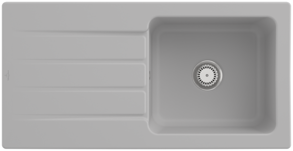 Keramický drez pre hornú montáž, bez excentra, farba Steam, šírka 100 cm Keramický drez Villeroy & Boch Architectura je vyrobený z materiálu CeramicPlus, ktorý zaisťuje výnimočnú tvrdosť, odolnosť proti poškriabaniu alebo inému poškodeniu a tiež odolnosť proti vysokým teplotám. Povrch je odolný voči cudzím látkam a nečistotám, takže sa výborne čistí a potraviny na ňom nezanechávajú žiadne stopy. Materiál CeramicPlus je vyrobený zo 100% prírodných materiálov, je farebne stály a neprijíma chute ani zápachy, takže ja absolútne nezávadný pre potraviny. Materiál: keramika s úpravou CeramicPlus Farba: Steam, matná Drez je určený pre hornú montáž na pracovnú dosku Drez je obojstranný - vanička môže byť napravo alebo naľavo Obsahuje odpadovú sadu bez excentra (ručné ovládanie výpuste) a sitko na nečistoty Sifón nie je súčasťou dodávky (možno doobjednať pod označením 94060000) Rozmery drezu (ŠxHxV): 1000 x 510 x 220 mm Rozmery výrezu (ŠxH): 970 x 480 mm Minimálna šírka skrinky: 600 mm Hmotnosť: 26,35 kg Pri objednávke uvádzajte číslo otvoru pre batériu - viď nákres Tento typ drezu sa vyrába vo farbách White alpin, Stone White, Cream, Ivory, Almond, Steam, Fossil, Stone, Graphite, Pure Black, Snow White, Timber, Chromite. Tento drez s odpadovou sadou s excentrom je na dopyt.(GT) Ean: 4051202586072