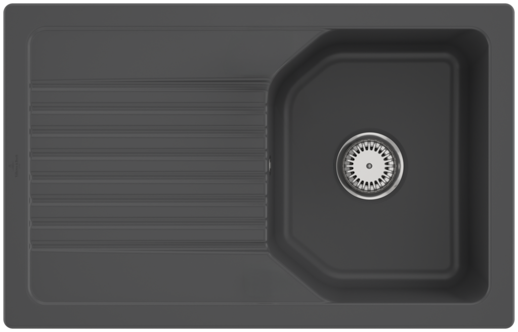 Keramický drez pre hornú montáž, bez excentra, farba Graphit, šírka 80 cm Keramický drez Villeroy & Boch Linara je vyrobený z materiálu CeramicPlus, ktorý zaisťuje výnimočnú tvrdosť, odolnosť proti poškriabaniu alebo inému poškodeniu a tiež odolnosť proti vysokým teplotám. chute ani zápachy, takže ja absolútne nezávadný pre potraviny. Materiál: keramika s úpravou CeramicPlus Farba: Graphit, matná Drez je určený pre hornú montáž na pracovnú dosku Drez je obojstranný - vanička môže byť napravo alebo naľavo Obsahuje odpadovú sadu bez excentra (ručné ovládanie výpuste) a sitko na nečistoty Sifón nie je súčasťou dodávky (možno doobjednať pod označením 94060000) Rozmery drezu (ŠxHxV): 800 x 510 x 200 mm Rozmery výrezu (ŠxH): 770 x 480 mm Minimálna šírka skrinky: 450 mm Hmotnosť: 21 kg Pri objednávke uvádzajte číslo otvoru pre batériu - viď nákres Tento typ drezu sa vyrába vo farbách White alpin, Stone White, Cream, Ivory, Almond, Steam, Fossil, Stone, Graphite, Pure Black, Snow White, Timber, Chromite. Tento drez s odpadovou sadou s excentrom je na dopyt.(GT) Ean: 4065467432944
