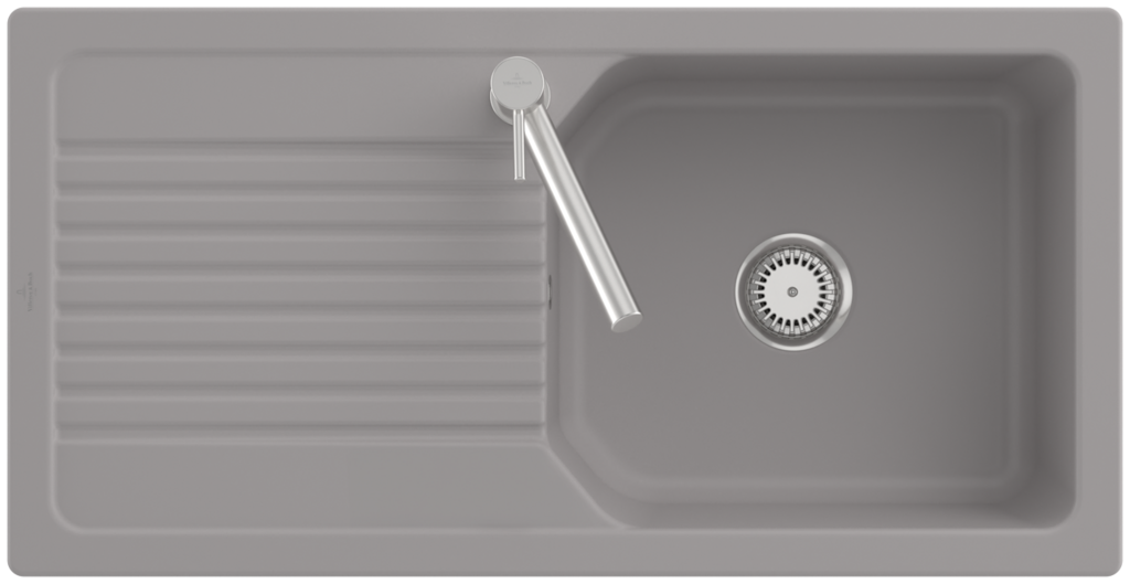 Keramický drez pre hornú montáž, bez excentru, farba Fossil, šírka 100 cm Keramický drez Villeroy & Boch Linara je vyrobený z materiálu CeramicPlus, ktorý zaisťuje výnimočnú tvrdosť, odolnosť proti poškriabaniu alebo inému poškodeniu a tiež odolnosť proti vysokým teplotám. Povrch je odolný voči cudzím látkam a nečistotám, takže sa výborne čistí a potraviny na ňom nezanechávajú žiadne stopy. Materiál CeramicPlus je vyrobený zo 100% prírodných materiálov, je farebne stály a neprijíma chute ani zápachy, takže ja absolútne nezávadný pre potraviny. Materiál: keramika s úpravou CeramicPlus Farba: Fossil, matná Drez je určený pre hornú montáž na pracovnú dosku Drez je obojstranný - vanička môže byť napravo alebo naľavo Obsahuje odpadovú sadu bez excentra (ručné ovládanie výpuste) a sitko na nečistoty Sifón nie je súčasťou dodávky (možno doobjednať pod označením 94060000) Rozmery drezu (ŠxHxV): 1000 x 510 x 200 mm Rozmery výrezu (ŠxH): 970 x 480 mm Minimálna šírka skrinky: 600 mm Hmotnosť: 24 kg Pri objednávke uvádzajte číslo otvoru pre batériu - viď nákres Tento typ drezu sa vyrába vo farbách White alpin, Stone White, Cream, Ivory, Almond, Steam, Fossil, Stone, Graphite, Pure Black, Snow White, Timber, Chromite. Tento drez s odpadovou sadou s excentrom je na dopyt.(GT) Ean: 4065467435778