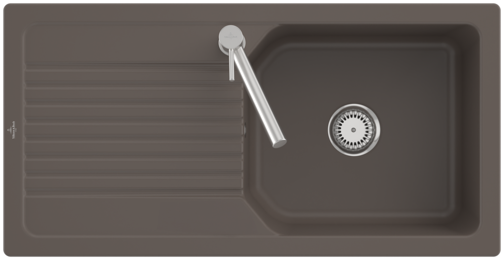 Keramický drez pre hornú montáž, bez excentra, farba Timber, šírka 100 cm Keramický drez Villeroy & Boch Linara je vyrobený z materiálu CeramicPlus, ktorý zaisťuje výnimočnú tvrdosť, odolnosť proti poškriabaniu alebo inému poškodeniu a tiež odolnosť proti vysokým teplotám. Povrch je odolný voči cudzím látkam a nečistotám, takže sa výborne čistí a potraviny na ňom nezanechávajú žiadne stopy. Materiál CeramicPlus je vyrobený zo 100% prírodných materiálov, je farebne stály a neprijíma chute ani zápachy, takže ja absolútne nezávadný pre potraviny. Materiál: keramika s úpravou CeramicPlus Farba: Timber, matná Drez je určený pre hornú montáž na pracovnú dosku Drez je obojstranný - vanička môže byť napravo alebo naľavo Obsahuje odpadovú sadu bez excentra (ručné ovládanie výpuste) a sitko na nečistoty Sifón nie je súčasťou dodávky (možno doobjednať pod označením 94060000) Rozmery drezu (ŠxHxV): 1000 x 510 x 200 mm Rozmery výrezu (ŠxH): 970 x 480 mm Minimálna šírka skrinky: 600 mm Hmotnosť: 24 kg Pri objednávke uvádzajte číslo otvoru pre batériu - viď nákres Tento typ drezu sa vyrába vo farbách White alpin, Stone White, Cream, Ivory, Almond, Steam, Fossil, Stone, Graphite, Pure Black, Snow White, Timber, Chromite. Tento drez s odpadovou sadou s excentrom je na dopyt.(GT) Ean: 4065467435853