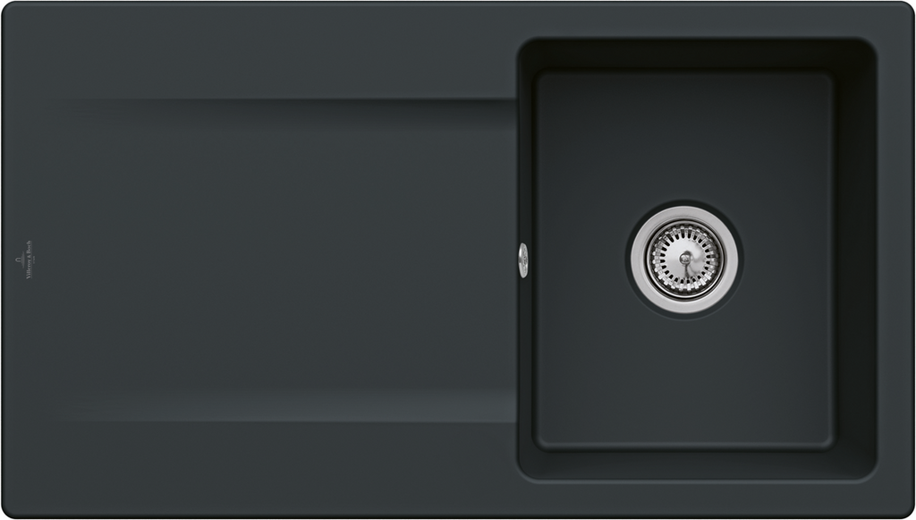Keramický drez pre hornú montáž, bez excentra, farba Pure Black, šírka 90 cm (nástupca za 333501S5, Ebony) Keramický drez Villeroy & Boch Siluet je vyrobený z materiálu TitanCeram, ktorý zaisťuje výnimočnú tvrdosť, odolnosť proti poškriabaniu alebo inému poškodeniu a tiež odolnosť proti vysokým teplotám. Povrch je odolný voči cudzím látkam a nečistotám, takže sa výborne čistí a potraviny na ňom nezanechávajú žiadne stopy. Materiál CeramicPlus je vyrobený zo 100% prírodných materiálov, je farebne stály a neprijíma chute ani zápachy, takže ja absolútne nezávadný pre potraviny. Materiál: keramika s úpravou TitanCeram Farba: Pure Black, matná Drez je určený pre hornú montáž na pracovnú dosku Drez je obojstranný - vanička môže byť napravo alebo naľavo Obsahuje odpadovú sadu bez excentra (ručné ovládanie výpuste) a sitko na nečistoty Sifón nie je súčasťou dodávky (možno doobjednať pod označením 94060000) Rozmery drezu (ŠxHxV): 900 x 510 x 220 mm Rozmery výrezu (ŠxH): 870 x 480 mm Minimálna šírka skrinky: 500 mm Hmotnosť: 25 kg Pri objednávke uvádzajte číslo otvoru pre batériu - viď nákres Tento typ drezu sa vyrába vo farbách White alpin, Stone White, Cream, Ivory, Almond, Steam, Fossil, Stone, Graphite, Pure Black, Snow White, Timber, Chromite. Tento drez s odpadovou sadou s excentrom je na dopyt.(GT) Ean: 4051202747305