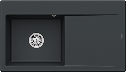 Keramický drez pre hornú montáž, ľavý, bez excentra, farba Pure Black, šírka 90 cm (nástupca za 332501S5, Ebony) Keramický drez Villeroy & Boch Subway Style je vyrobený z materiálu CeramicPlus, ktorý zaisťuje výnimočnú tvrdosť, odolnosť proti poškriabaniu alebo inému poškodeniu a tiež odolnosť proti vysokým teplotám. Povrch je odolný voči cudzím látkam a nečistotám, takže sa výborne čistí a potraviny na ňom nezanechávajú žiadne stopy. Materiál CeramicPlus je vyrobený zo 100% prírodných materiálov, je farebne stály a neprijíma chute ani zápachy, takže ja absolútne nezávadný pre potraviny. Materiál: keramika s úpravou CeramicPlus Farba: Pure Black, matná Drez je určený pre hornú montáž na pracovnú dosku Drez má vaničku naľavo (rovnaký drez s vaničkou napravo má označenie 335101R7) Obsahuje odpadovú sadu bez excentra (ručné ovládanie výpuste) a sitko na nečistoty Sifón nie je súčasťou dodávky (možno doobjednať pod označením 94060000) Rozmery drezu (ŠxHxV): 900 x 510 x 220 mm Rozmery výrezu (ŠxH): 870 x 480 mm Minimálna šírka skrinky: 500 mm Hmotnosť: 22 kg Možné až 4 otvory s priemerom 35 mm pre batériu a dávkovač mydla Pri objednávke uvádzajte číslo otvoru pre batériu - viď nákres Tento typ drezu sa vyrába vo farbách White alpin, Stone White, Cream, Ivory, Almond, Steam, Fossil, Stone, Graphite, Pure Black, Snow White, Timber, Chromite. Tento drez s odpadovou sadou s excentrom je na dopyt.(GT) Ean: 4062373797082