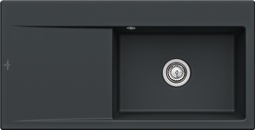 Keramický drez pre hornú montáž, pravý, bez excentra, farba Pure Black, šírka 100 cm (nástupca za 336101S5, Ebony) Keramický drez Villeroy & Boch Subway Style je vyrobený z materiálu CeramicPlus, ktorý zaisťuje výnimočnú tvrdosť, odolnosť proti poškriabaniu alebo inému poškodeniu a tiež odolnosť proti vysokým teplotám. Povrch je odolný voči cudzím látkam a nečistotám, takže sa výborne čistí a potraviny na ňom nezanechávajú žiadne stopy. Materiál CeramicPlus je vyrobený zo 100% prírodných materiálov, je farebne stály a neprijíma chute ani zápachy, takže ja absolútne nezávadný pre potraviny. Materiál: keramika s úpravou CeramicPlus Farba: Pure Black, matná Drez je určený pre hornú montáž na pracovnú dosku Drez má vaničku napravo (rovnaký drez s vaničkou naľavo má označenie 336201R7) Obsahuje odpadovú sadu bez excentra (ručné ovládanie výpuste) a sitko na nečistoty Sifón nie je súčasťou dodávky (možno doobjednať pod označením 94060000) Rozmery drezu (ŠxHxV): 1000 x 510 x 220 mm Rozmery výrezu (ŠxH): 970 x 480 mm Minimálna šírka skrinky: 600 mm Hmotnosť: 23 kg Možné až 4 otvory s priemerom 35 mm pre batériu a dávkovač mydla Pri objednávke uvádzajte číslo otvoru pre batériu - viď nákres Tento typ drezu sa vyrába vo farbách White alpin, Stone White, Cream, Ivory, Almond, Steam, Fossil, Stone, Graphite, Pure Black, Snow White, Timber, Chromite. Tento drez s odpadovou sadou s excentrom je na dopyt.(GT) Ean: 4062373797525