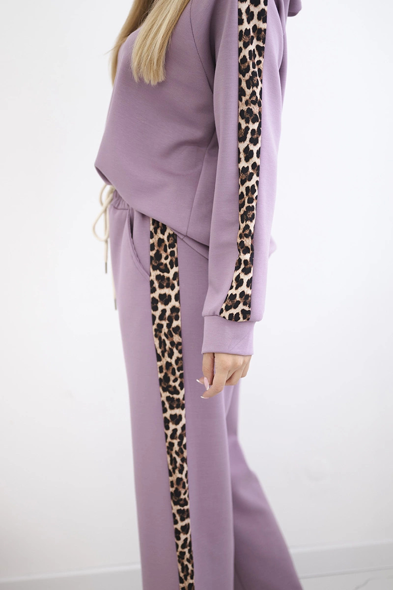 Súprava z viskózy s leopardími pruhmi je štýlovou a pohodlnou ponukou pre milovníčky módnych akcentov. Mikina poskytuje pohodlie a voľnosť, dokonale chráni pred chladom a nohavice s vreckami a viazaním v páse zaručujú pohodlné nosenie. Pruhy s leopardím vzorom dodávajú súprave výraznosť a modernosť a podčiarkujú módny vzhľad. Súprava je vyrobená z mäkkej viskózy a je ideálna na každodenné a ležérne štýly. Veľkosť je univerzálna a hodí sa pre ženy, ktoré nosia veľkosť S, M alebo L. TALIANSKA VÝROBA Materiálové zloženie: materiálové zloženie: 95 % viskóza, 5 % elastanu. Nižšie uvedené miery sú merané ako plocha +/- 1 cm Ak chcete získať rozmer obvodu, vynásobte šírku číslom 2 Rozmery mikiny: Šírka v podpazuší: 57 cm Celková dĺžka: 62 cm Dĺžka rukáva od podpažia: 47 cm Rozmery nohavíc: Šírka v páse: 33 cm/po natiahnutí: 54 cm Celková dĺžka: 98 cm Šírka nohavíc od rozkroku: 65 cm Šírka bokov: 54 cm Recept na pranie: Pred čistením oblečenia si vždy prečítajte pokyny na pranie uvedené na vnútornom štítku. Perte pri maximálnej teplote 30 °C, žehlite pri maximálnej teplote 110 °C, Nebieľte ani nechlórujte, Čistite chemicky v benzíne, Nesušte v bubnovej sušičke.