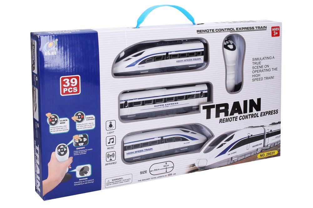 Vlak rychlostní set RC. Rozměry 84x62 cm, délka trati 308 cm. Součástí mašinka a 2 vagóny, koleje, ovladač s přísavkou, výhybka, stromy, značka. Magnetické spojení vagónů. Světelné a zvukové efekty. Ovladač - jízda dopředu, jízda dozadu. 3xAA do vlaku, 2xAA do ovladače nejsou součástí. Superrýchly vlak pre milovníkov najnovších technológií a spôsobov cestovania. Vďaka svetelným efektom sa nestratí ani v tuneli. Obsah balenia: Motor a 2 autá skladby ovládač s prísavkou vypínač, stromy, značka. Magnetické…