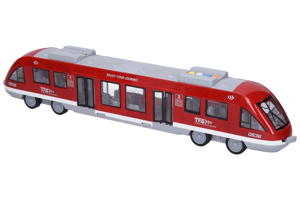 Vlak s efekty. Velikost 44,5 x 5,8 x 9 cm. Světelné a zvukové efekty, aktivace tlačítky na střeše. Na setrvačník. Vlak s efekty. Velikost 44,5 x 5,8 x 9 cm. Světelné a zvukové efekty, aktivace tlačítky na střeše. Na setrvačník.