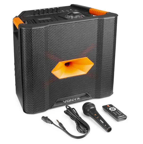 Prenosný reproduktor Vonyx ROCK300 180W BT FM – Váš prenosný zvukový systém Prenosný reproduktor Vonyx ROCK300 je perfektným riešením pre hudobných nadšencov, ktorí si chcú vychutnať vysokokvalitný zvuk kdekoľvek. Jeho kompaktné rozmery a ľahká konštrukcia uľahčujú prenášanie, vďaka čomu je ideálnym spoločníkom na večierky, vystúpenia alebo stretnutia s priateľmi.Bezdrôtové streamovanie hudby s Bluetooth 5.0 Vďaka modernej technológii Bluetooth 5.0 vám reproduktor ROCK300 umožňuje bezdrôtovo streamovať hudbu z rôznych zariadení, ako sú smartfóny a notebooky. Užite si slobodu pohybu a prehrávajte svoje obľúbené skladby bez problémov s káblami.Bezdrôtové streamovanie hudby s Bluetooth 5.0Vstavaná batéria s výdržou až 10 hodín ROCK300 je vybavený výkonnou batériou, ktorá poskytuje až 10 hodín prevádzky na jedno nabitie. To vám umožní vychutnať si hudbu celé hodiny bez ohľadu na to, kde sa nachádzate.Vstavaná nabíjateľná batéria s výdržou až 10 hodínKaraoke a zvukové efekty pre každú párty Reproduktor Vonyx ROCK300 nie je len audio systém, ale aj skvelý nástroj pre zábavu. Vďaka káblovému mikrofónu a funkcii karaoke s nastaviteľnými efektmi ozveny a dozvuku bude každá párty nezabudnuteľná.Karaoke a zvukové efekty pre každú pártySilný zvuk s výkonom 180 W S maximálnym výkonom 180 W poskytuje reproduktor ROCK300 silný zvuk, ktorý určite uspokojí aj tých najnáročnejších používateľov. Ponúka krištáľovo čistý zvuk s výkonnými basmi, vďaka čomu je ideálnou voľbou pre rôzne akcie.Silný zvuk s výkonom 180 WFunkcia stereo párovania pre vylepšený zvuk Spárovanie dvoch reproduktorov ROCK300 umožňuje stereo zvuk, čím sa výrazne zvyšuje kvalita zvuku a výkon. Toto je perfektné riešenie pre tých, ktorí chcú vytvoriť ešte pohlcujúcejší zvukový zážitok. Funkcia stereo párovania pre lepší zvukTechnické špecifikácie mobilného reproduktora Vonyx ROCK300 Kód výrobcu: 170.128Značka: VonyxModel: ROCK300Typ: ReproduktorŠírka produktu: 40,00 cmHĺbka produktu: 29,50 cmFarba: ČiernaMenovitý výkon RMS: 90 WMaximálny výstupný výkon: 180 WVstavaná batéria: 12 V - 5 AhFrekvenčná odozva: 30 Hz - 19 000 HzPriemer basového reproduktora: 8"Priemer výškového reproduktora: 1"Typ magnetu: FeritovýHmotnosť magnetu: 20 uncíHmotnosť produktu: 7,25 kgVstupy: 3,5 mm jack, 6,3 mm jack, USBNapájanie: 100 – 240 V AC 50/60 Hz (adaptér 15 V)Rozmery (D x Š x V): 295 x 400 x 345 mmĎalšie funkcie: Bezdrôtové pripojenie, Bluetooth 5.0, funkcia ozveny, stereo párovanie, prehrávanie MP3 cez USB, FM rádioDodávané príslušenstvo: Káblový mikrofón, diaľkové ovládanie, držiak na reproduktorovú tyč Objednajte si teraz a vychutnajte si najlepšiu kvalitu zvuku a nezabudnuteľné chvíle s reproduktorom Vonyx ROCK300!