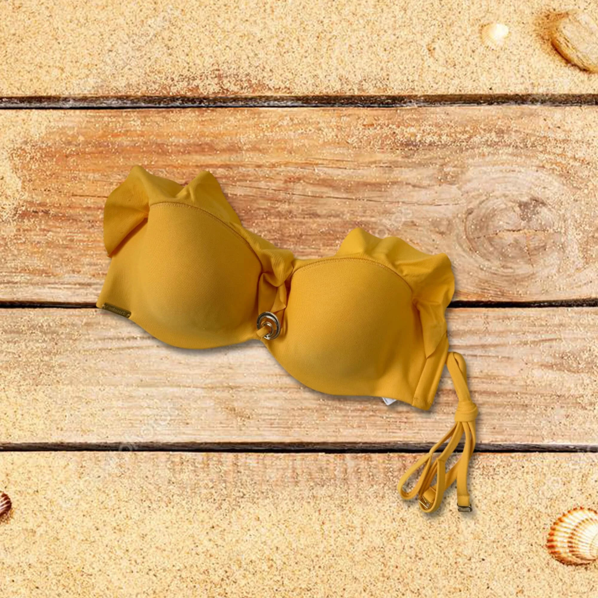 Dámsky vrchný diel plaviek Selmark - vystužené košíčky s kosticami - ozdobný volánik v hornej časti - rýchloschnúci materiál - odnímateľné ramienka - zloženie: 81 % polyamid, 19 % elastan