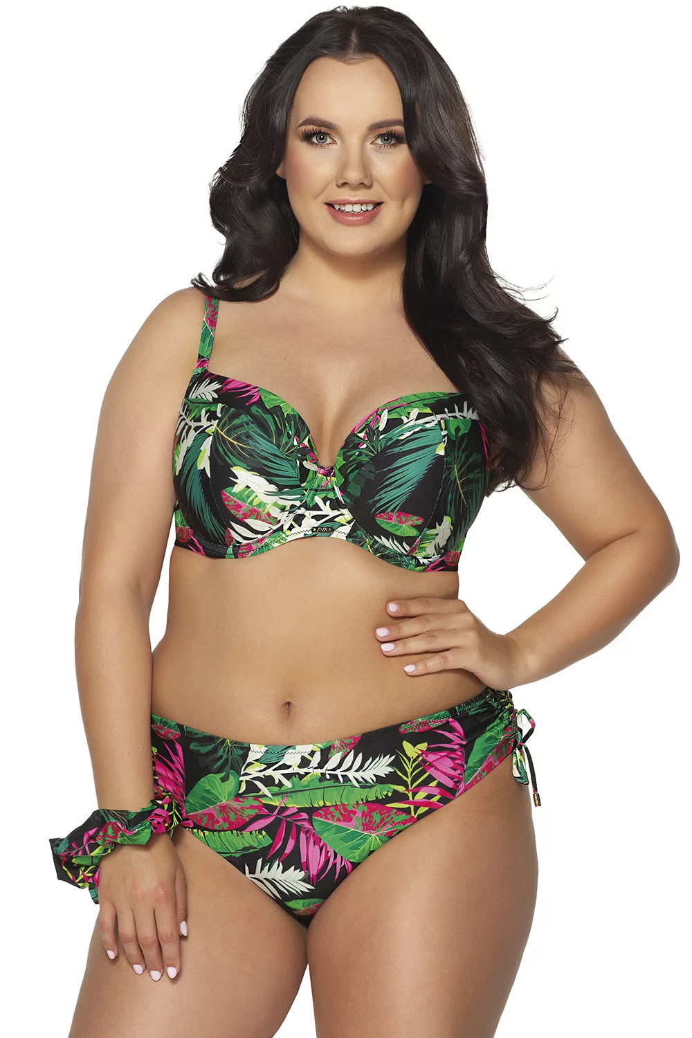 Dámsky vrchný diel plaviek Ava. Model SK-201. Produkt pre ženy. Podprsenka je vystužená, s kosticami. Popruhy nie sú odnímateľné, ale sú posuvné. Zapínanie na zadnej strane pomocou kovovej spony. Zloženie materiálu: 80% polyamid, 20% elastan