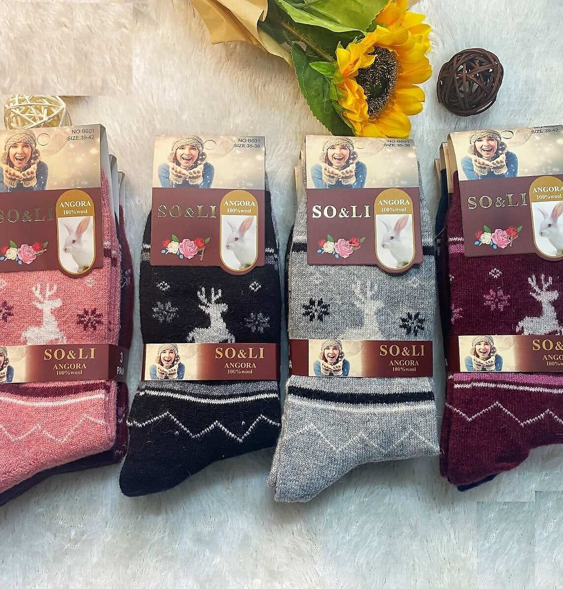 Teplé dámske ponožky na zimu - zdobené zimným vzorom - ploché švy - pohodlné rebrovanie Zloženie: 95 % angora, 5 % spandex