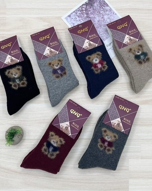 Teplé dámske ponožky na zimu - zdobené vzormi medvedíkov - froté na vnútornej strane - ploché švy - pohodlné rebrovanie Zloženie: 95 % angora, 5 % spandex