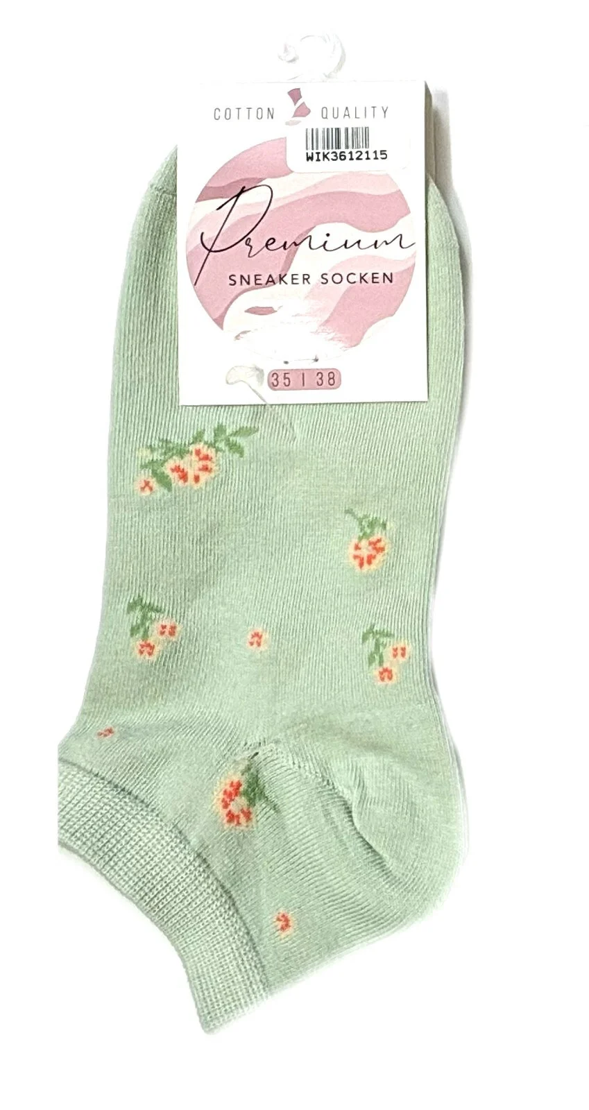 Dámske bavlnené ponožky - s netlačiacim lemom - zdobené kvetinovým vzorom - plochý šev Zloženie: 70 % bavlna, 28 % polyester, 2 % elastan
