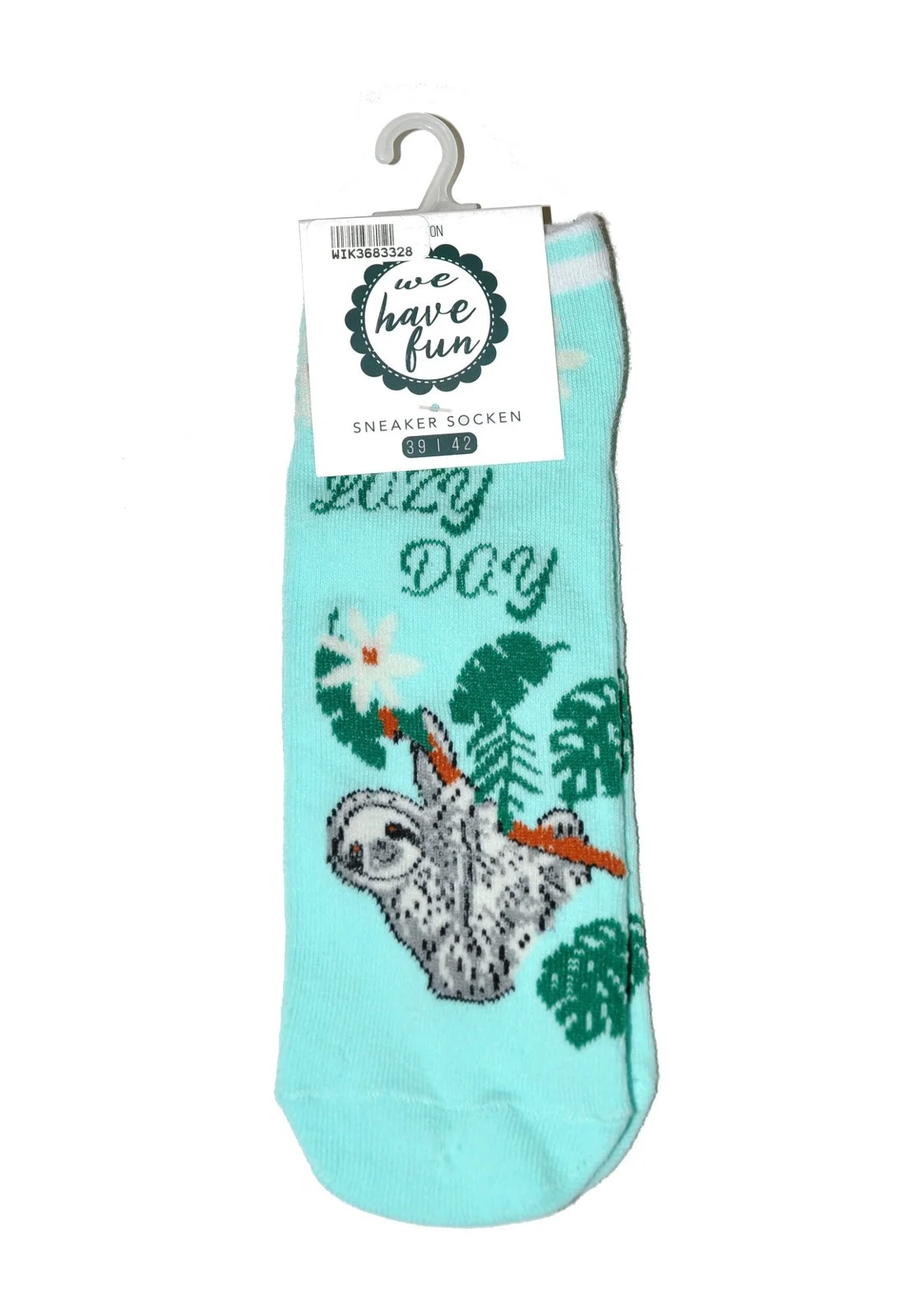 Dámske bavlnené ponožky - s netlačiacim lemom - zdobené farebným vzorom Zloženie: 75 % bavlna, 22 % polyester, 3 % elastan