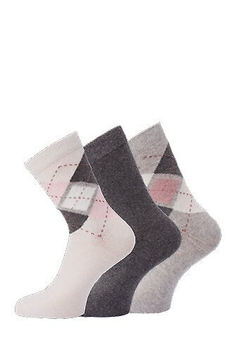 Dámske ponožky na zimu - vysokokvalitná mäkká priadza s vlnou - farebný kosoštvorcový vzor - ploché švy - pohodlné rebrovanie Zloženie: 35% polyester, 30% polyakryl, 20% polyamid, 12% vlna, 3% elastan