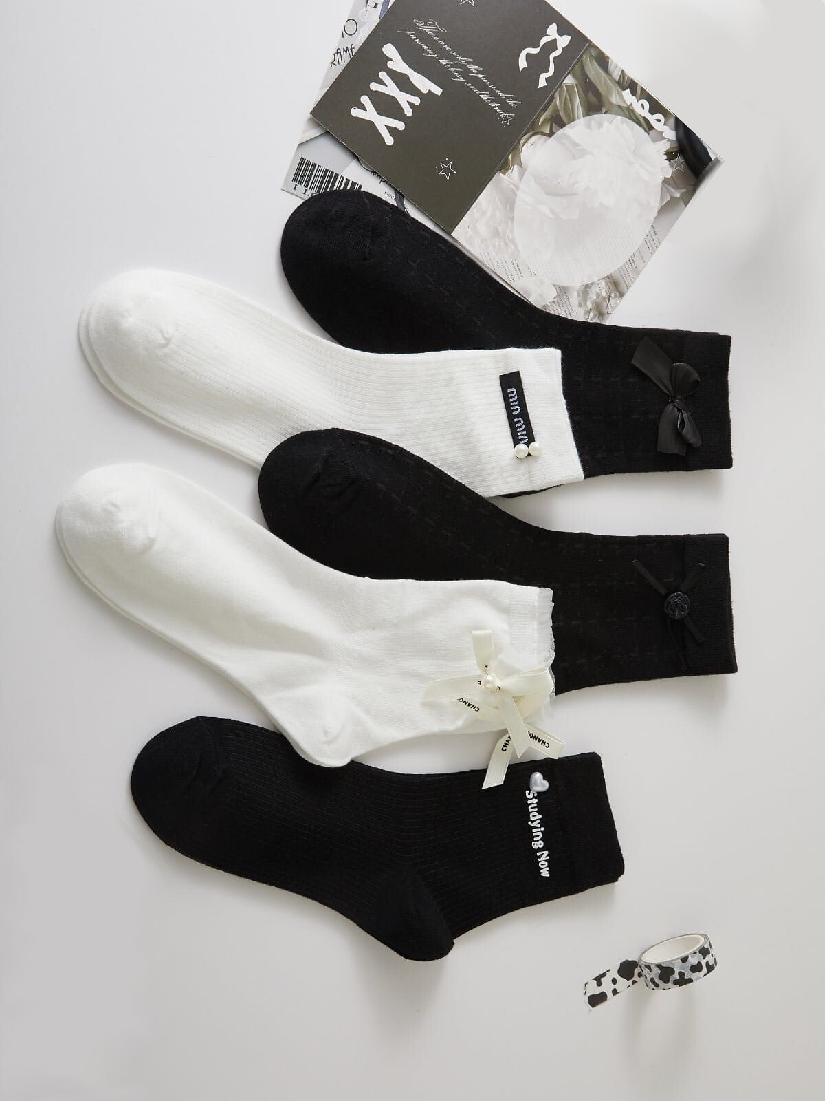 Bavlnené dámske ponožky - zdobené aplikáciou našitou na členku - s netlačiacim lemom - plochý šev Zloženie: 95 % bavlna, 5 % spandex