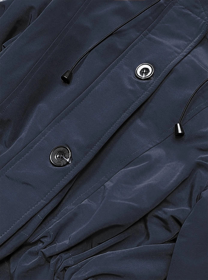 Pri výbere veľkosti venujte pozornosť nižšie uvedenej veľkostnej tabuľke. Veľkosti nezodpovedajú bežne nosenému oblečeniu. Bunda s vysokou gombíkovou légou Bunda má priliehavý strih, vnútri je zateplená machovou kožušinou, má dve vrecká a zapína sa na zips a panel s gombíkmi. Model má kapucňu lemovanú kožušinou. Zatiaľ čo kapucňa sa nedá odopnúť, kožušina lemujúca kapucňu sa dá odopnúť. Rukávy sú zateplené výplňou zo syntetického peria. Na koncoch rukávov sú skryté lemy so sťahovacími šnúrkami. V páse modelu je sťahovacia šnúrka. Na bokoch bundy sú rozparky so zapínaním na zips a ozdobné prúžky. Bunda má vzadu rozparky so zapínaním na patentky. Model má dĺžku do polovice stehien. Zloženie: vrchná vrstva - 100 % polyester, podšívka - 100 % polyester.