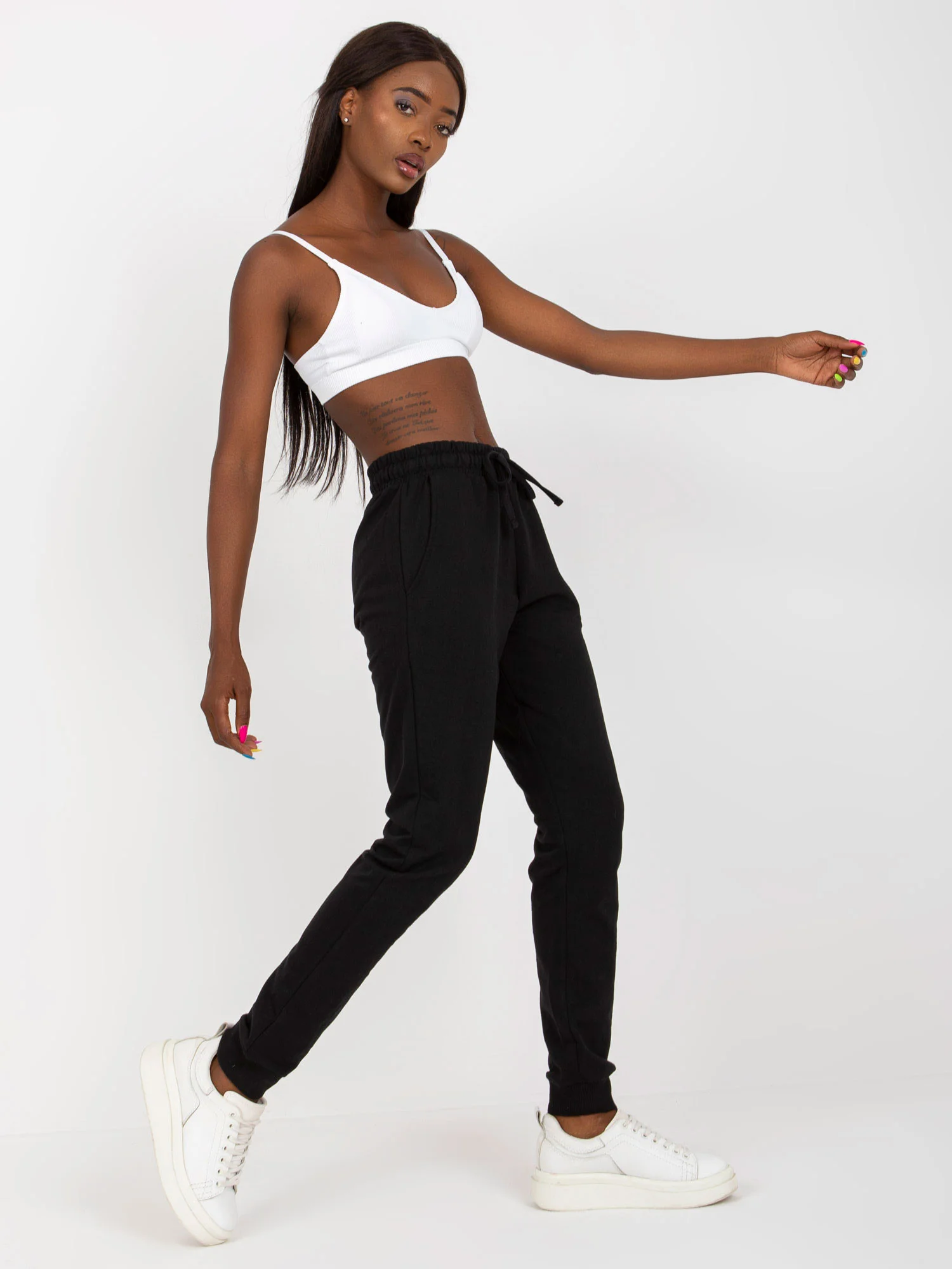 Čierne základné tepláky s vysokým pásom. viazanie na doplnky, elastický pás, vrecká Zloženie materiálu: 60% bavlna, 40% polyester Spôsob prania: pranie v práčke na 30 °C Kód produktu: B-006.19 dominantný vzor: jednofarebný štýl: ležérny, športový príležitosť: každý deň, do mesta, na prechádzku Modelka má na sebe veľkosť S. Rozmery modelky: výška 162 cm, prsia 80 cm, pás 63 cm, boky 80 cm. Rozmery nohavíc vo veľkosti S merané na plocho: šírka pása - 33 cm, výška pása - 29 cm, celková dĺžka - 95 cm.Medzinárodná veľkosťVýškaObvod pásaObvod bokovVonkajšia dĺžka nohyVnútorná dĺžka nohyXS34156-16466-74868473S36160-16872-80908774M38162-17278-86949075L40164-17484-901029476XL42166-17888-961069877