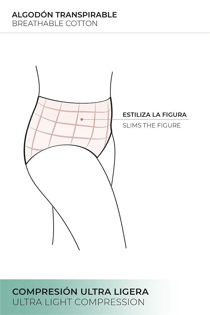 Modelovacie nohavičky pre ženy - vyrobené z kvalitnej bavlny - vysoký, vystužený vrchný diel - čipkou zdobený pás - s miernou korekciou brucha a bokov - ideálny strih - balené v krabici Zloženie: 80 % bavlna, 20 % polyester