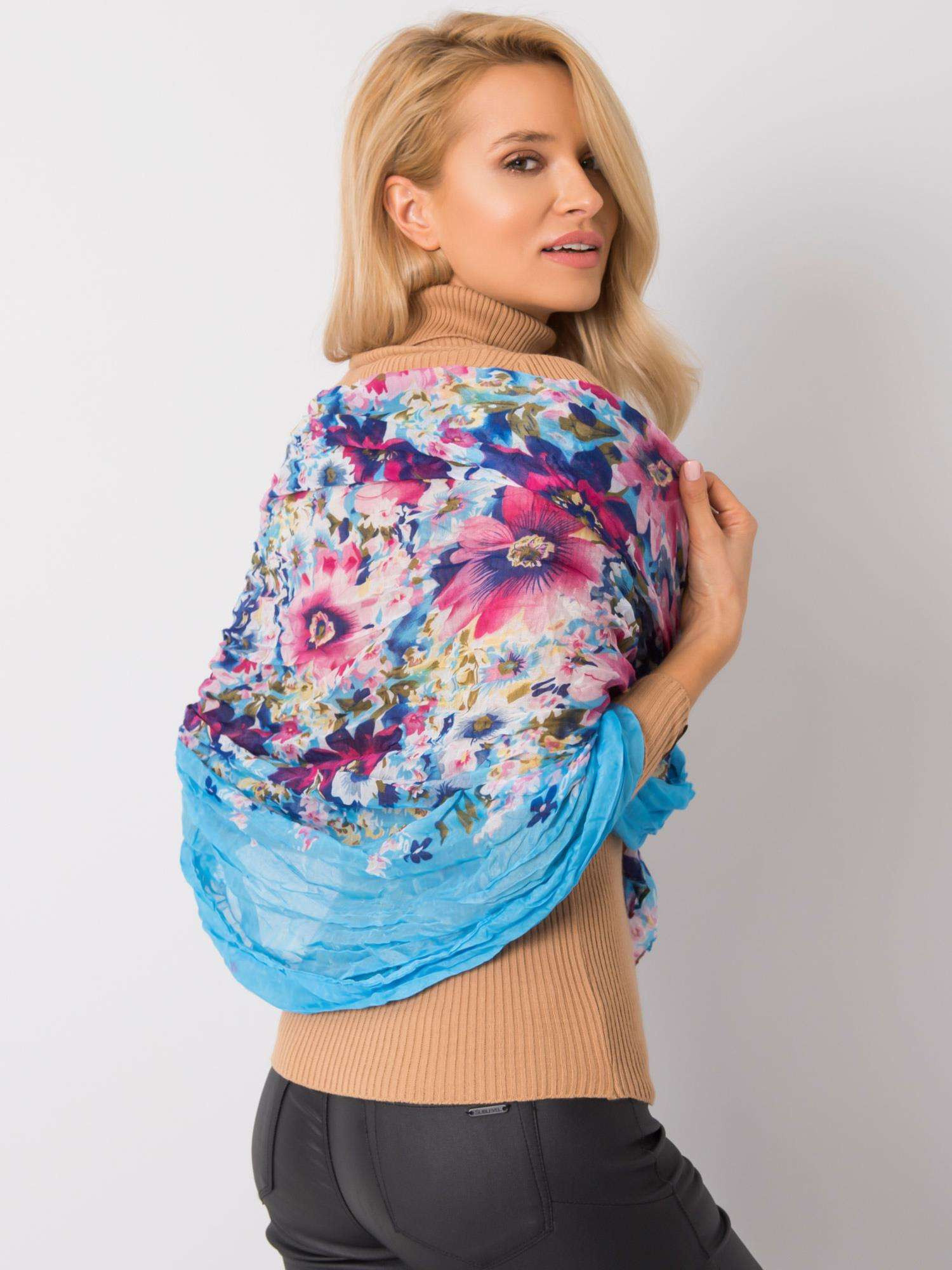 Svetlomodrá šatka s kvetinovou potlačou. zloženie tkaniny: 100 % viskóza spôsob prania: pranie v práčke pri 30 °C rozmery: šírka - približne 80 cm, dĺžka - približne 180 cm