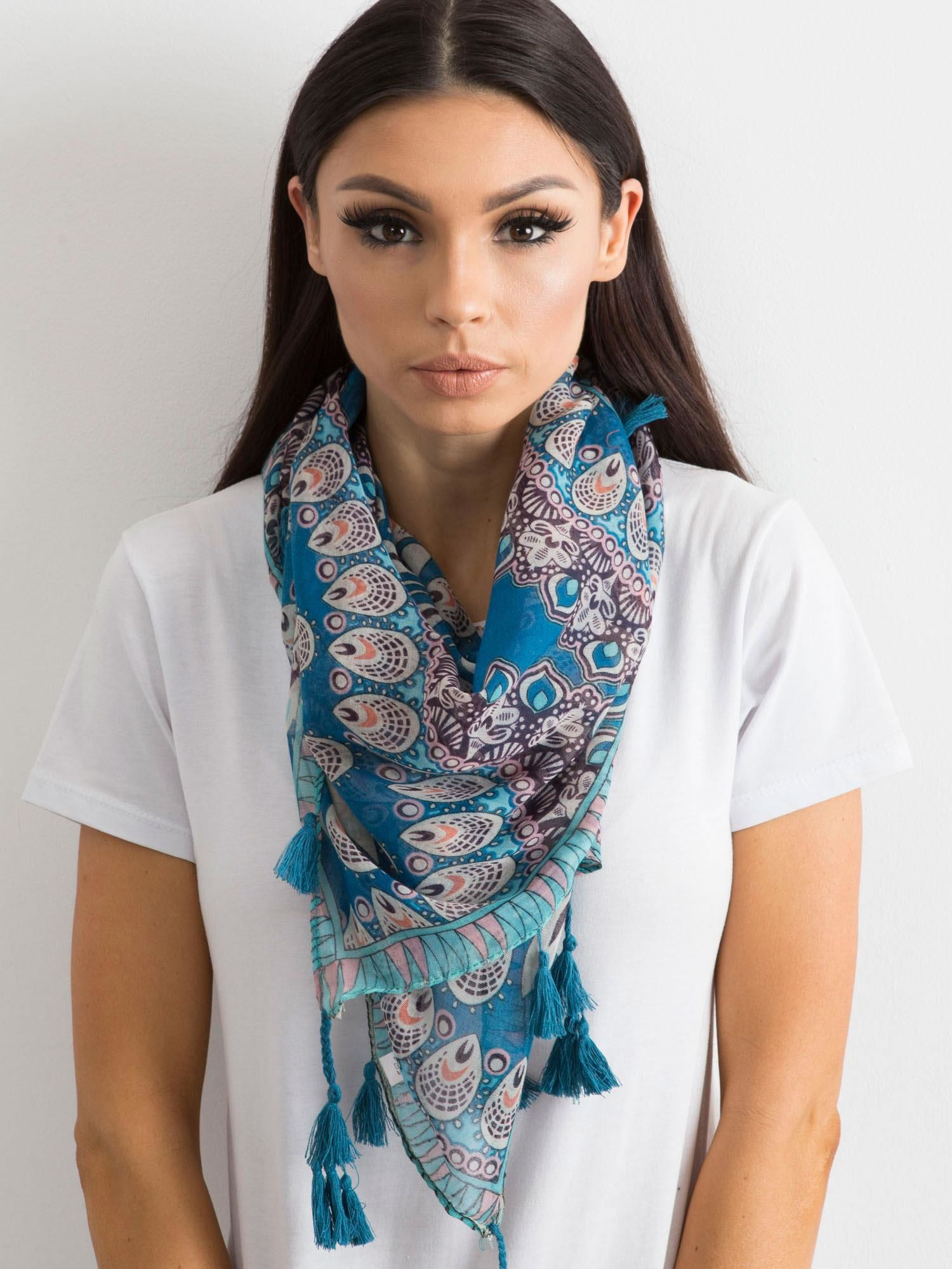 Sling s etnickou modrou potlačou. príslušenstvo: strapce zloženie tkaniny: 100 % viskóza spôsob prania: pranie v práčke pri 30 °C rozmery: približne 110 x 110 cm