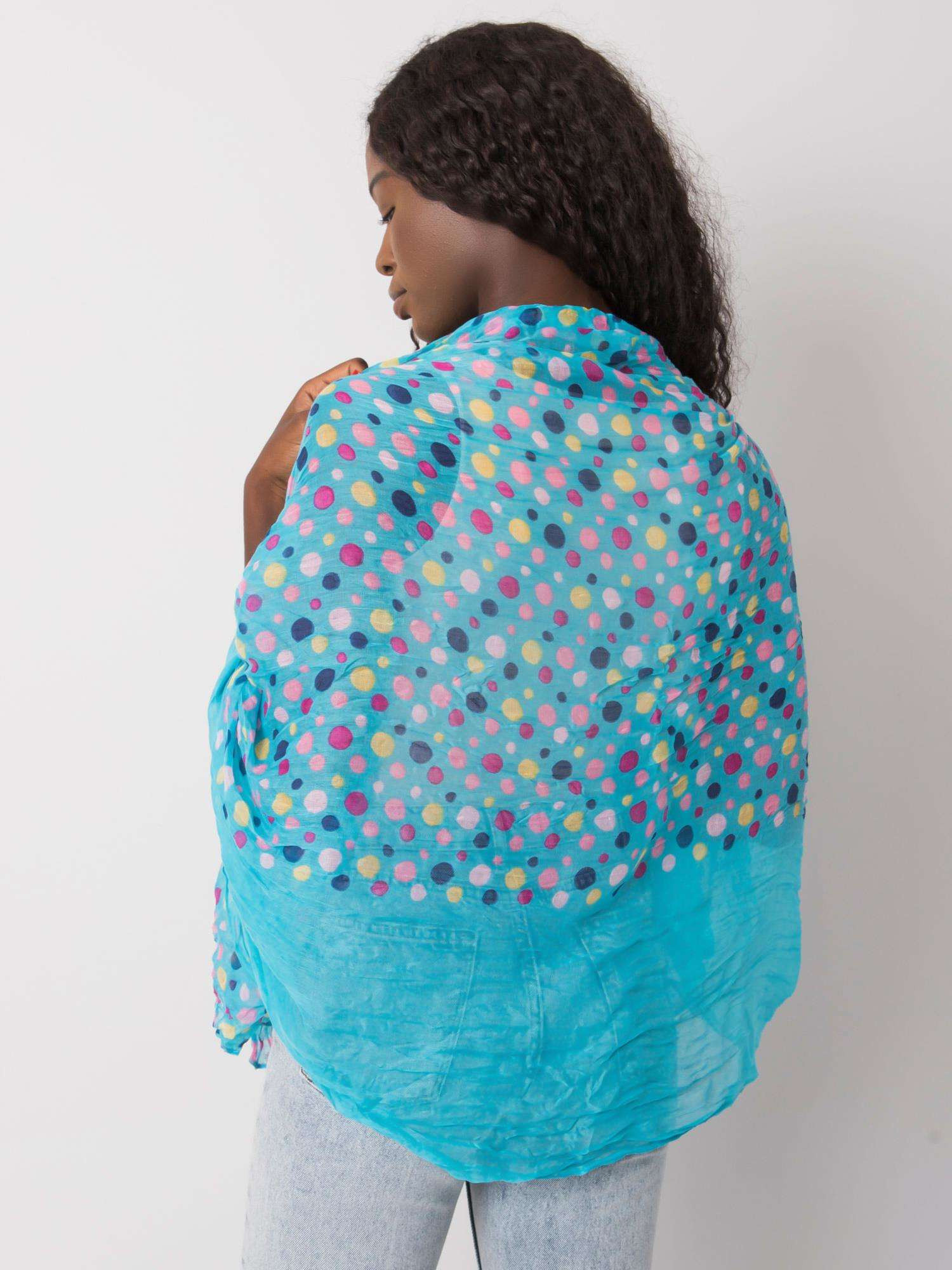 Modrá šatka s farebným hráškom. zloženie látky: 100% viskóza spôsob prania: pranie v práčke pri 30 °C rozmery: približne 180 x 82 cm