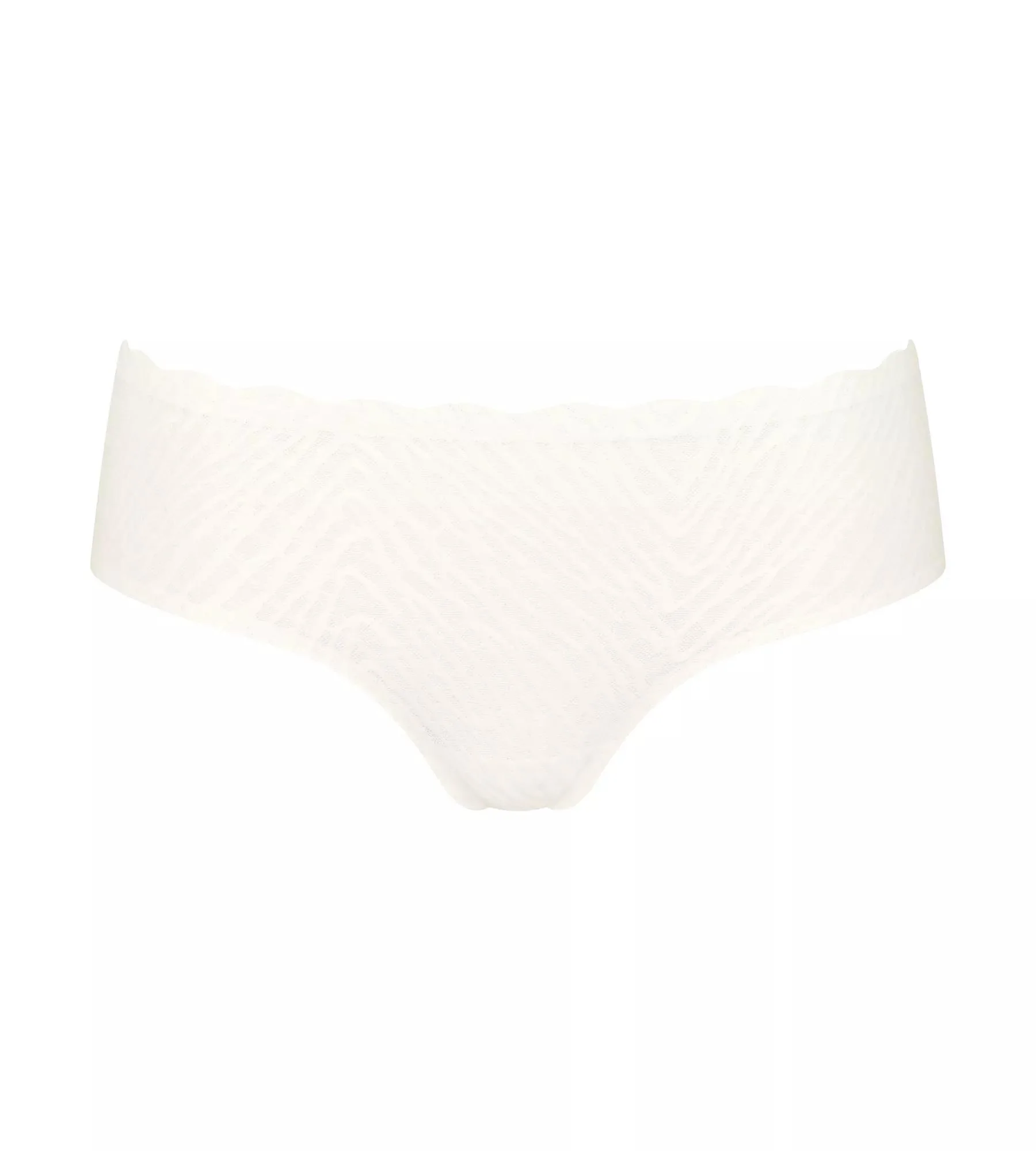 Tieto hipster nohavičky ZERO Feel Bliss z romantickej, 360° elastickej čipky poskytujú bezšvové, neviditeľné pohodlie. Voľne strihané okraje poskytujú hladký vzhľad bez VPL. Hipster nohavičky so širokými bokmi a plným krytím v zadnej časti 360° elastická grafická čipka Recyklovaná tkanina s certifikátom GRS Voľne strihaný nariasený pás sa prispôsobí pokožke, takže sa nekrčí. Žiadne kostice, žiadne štítky, žiadne švy pre pocit druhej kože Možno kombinovať s nohavičkami rovnakého štýlu OEKO-TEX® STANDARD 100, 22.0.22419 Hohenstein HTTI 76% polyamid, 24% elastan