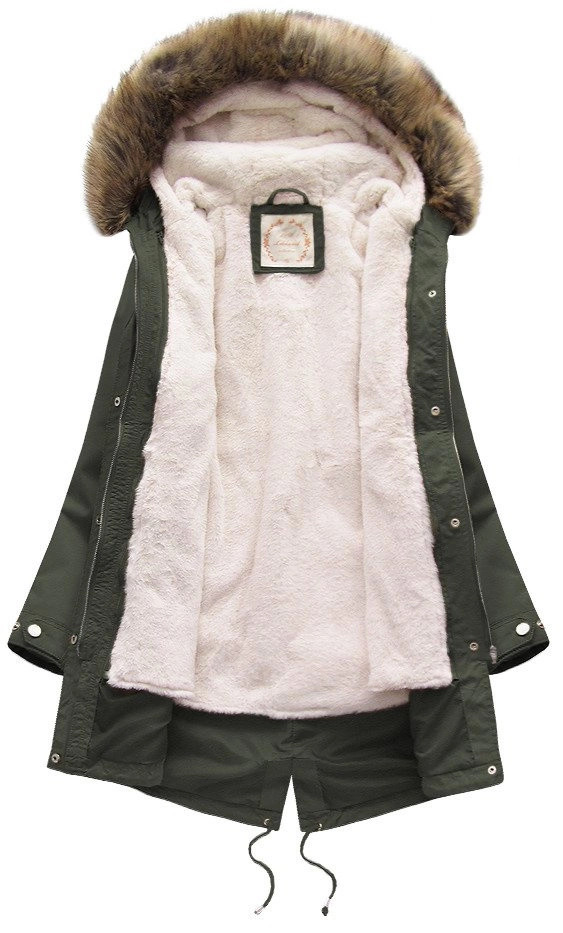 Dámska zimná bunda parka v army farbe s odnímateľnou podšívkou a kapucňou (7626) odstíny zelené XL (42)