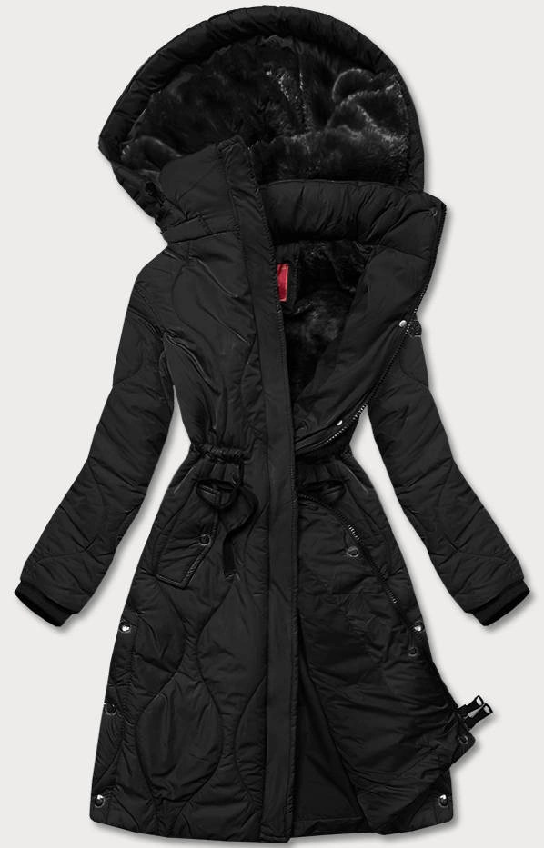 Čierna dámska zimná bunda po kolená (m-21601) odstíny černé XL (42)