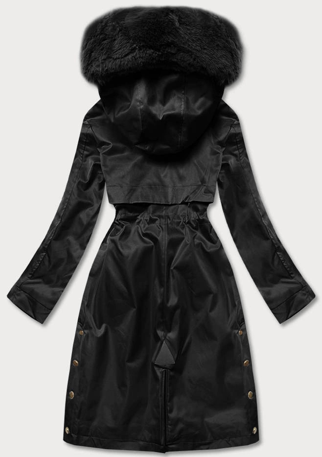 Čierna dámska zimná bunda s podšívkou z machovej kožušiny (b537-1) odstíny černé XL (42)