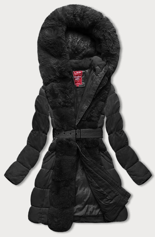 Domov Oblečenie a móda Dámske oblečenie Dámske bundy a kabáty Čierna dámska zimná bunda s kožušinou (2M-008) odstíny černé S (36)