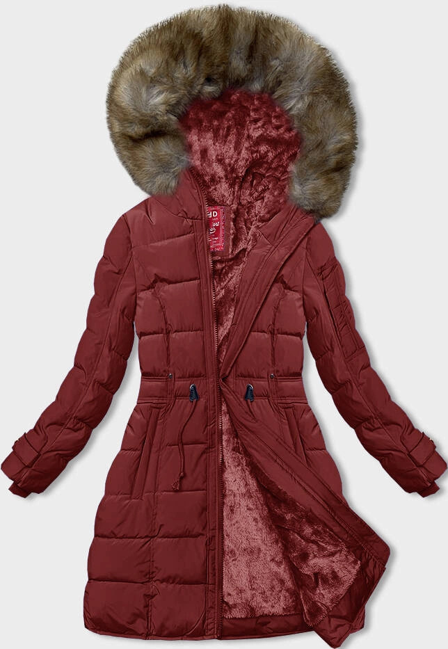 Červená dámska zimná bunda s kožušinovou podšívkou (LHD-23063) odstíny červené XL (42)