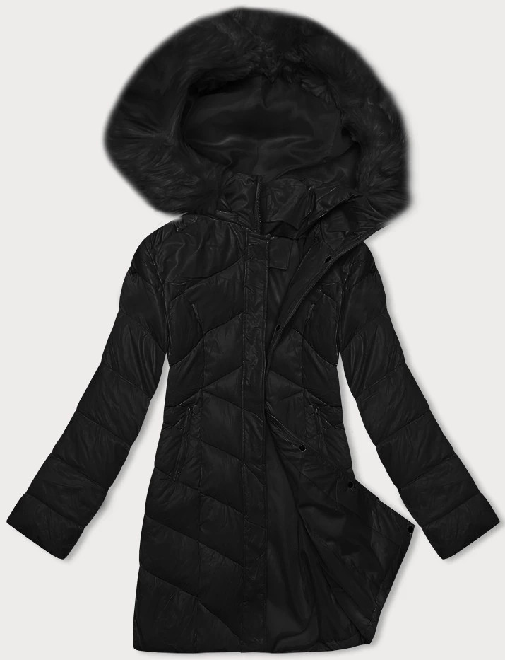 Čierna dámska zimná bunda s kapucňou (H-898-01) odstíny černé XXL (44)
