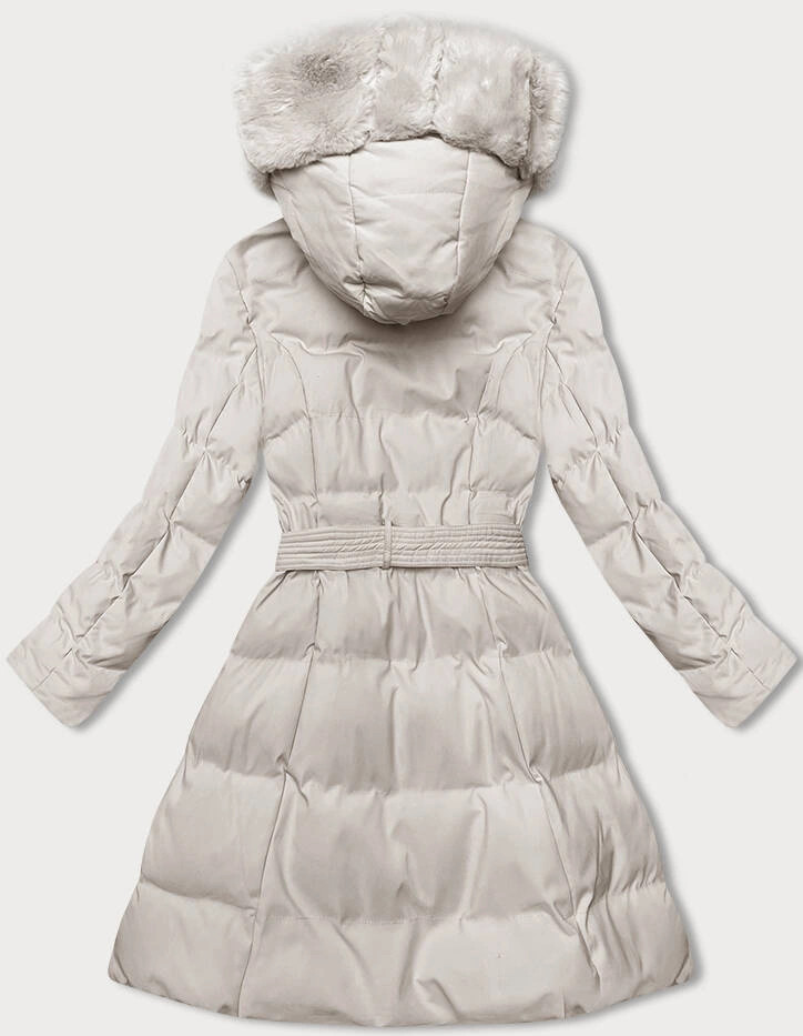 Dámska zimná bunda vo farbe ecru s ozdobnou kožušinou (5M3158-254) odstíny béžové L (40)