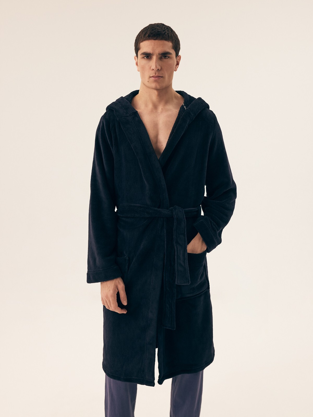 Pánsky župan s kapucňou - pohodlná a mäkká pletenina - zaväzuje sa v páse - pohodlné vrecká na bokoch Zloženie: 100 % polyester